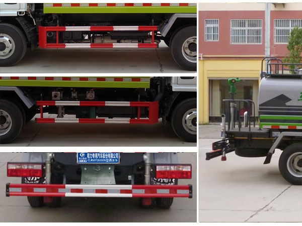 | 配置 | 1、该车仅选用3308mm轴距,罐体有效容积为4.02立方米,罐体尺寸为(mm):3400×1600×1100。2、防护材料:Q235B碳钢,连接方式:左右侧面及后下部防护均采用螺栓连接,后部防护断面尺寸(mm):120×50,后部防护离地高度(mm):430。3、ABS型号/厂家:ABS/ASR-12V-4S/4M/襄阳东风隆诚机械有限责任公司。4、专用装置:罐体,主要用于路面洒水及园林绿化。5、随底盘选装驾驶室。6、选装前冲洒水装置位于罐体前,驾驶室后。 | ||