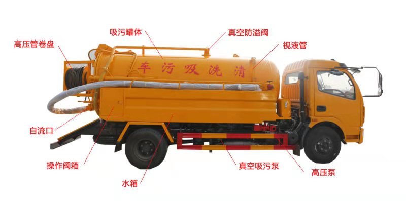 4、吸污部分使用山东SK-15水循环真空泵,**抽速6m3/min,垂直吸程:9-10米。相对于传统旋片式真空泵结构紧凑、吸力强,工作平稳可靠,操作简单,维修便捷。带视粪窗、洗手装置,7米φ102吸污罐一根。后盖可打开,罐体可举升。