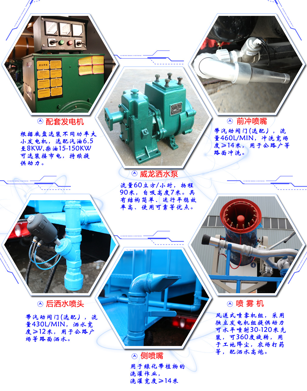 | 配置 | 1、该车主要用于园林绿化,主要专用装置为水罐和喷洒总成。运输介质:水.密度:1000千克/立方米,罐体有效容积:13.63立方米,罐体外形尺寸(长×长轴×短轴)(mm): 6000×2330×1435。仅选用轴距: 4350+1350mm 2、侧/后防护材料为Q235B,侧防护螺栓连接,后防护焊接,截面尺寸(mm):150×50,离地高(mm):500。3、随底盘选装驾驶室,选装后部LED箭头指示灯,选装方形装卸软管箱,选装后弧形喷雾。ABS型号/生产厂家:3631010-C2000/东科克诺尔商用车制动系统(十堰)有限公司。 | ||