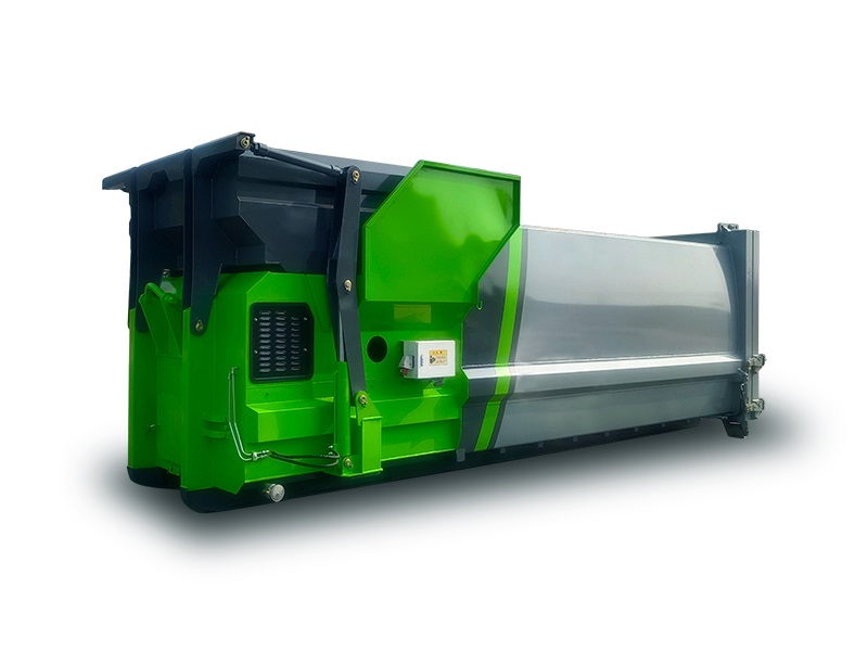 翻斗型移动式垃圾压缩站由压缩腔,装载箱体、后门、翻转斗、液压系统和电气系统等组成。适应城市、乡镇区域垃圾转运站点垃圾量集中的情况下使用,适用的前端收集工具有:中小型收集车、电动三轮车等。