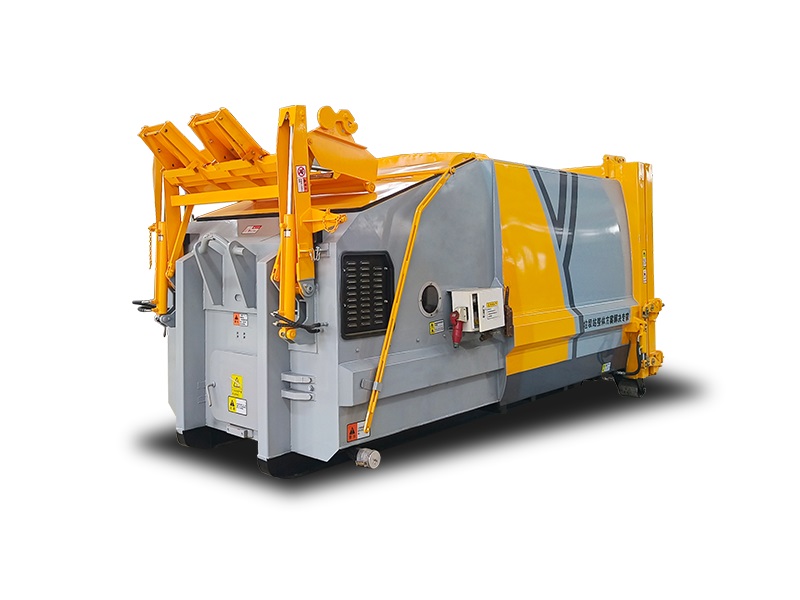 挂桶型移动式垃圾压缩站由压缩腔、装载箱体、后门、翻桶机构,液压系统、电气系统和选配小容积垃圾斗等组成。适应城市、乡镇区域垃圾转运站点垃圾量集中的情况下使用,适用的前端收集工具有:120L垃圾桶、240L垃圾桶、660L垃圾桶,选配垃圾斗情况下可拓展中小型收集车,电动三轮车等。