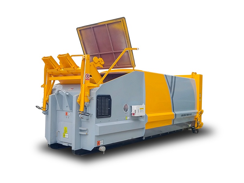 挂桶型移动式垃圾压缩站由压缩腔、装载箱体、后门、翻桶机构,液压系统、电气系统和选配小容积垃圾斗等组成。适应城市、乡镇区域垃圾转运站点垃圾量集中的情况下使用,适用的前端收集工具有:120L垃圾桶、240L垃圾桶、660L垃圾桶,选配垃圾斗情况下可拓展中小型收集车,电动三轮车等。